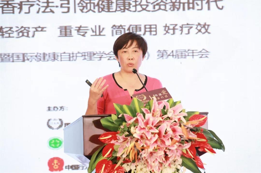 尤红致辞时肯定了芳香疗法,她认为芳香疗法历史悠久,应用广泛,促进健康,发展前景看好,她总结说芳香促健康,健康要芳香。