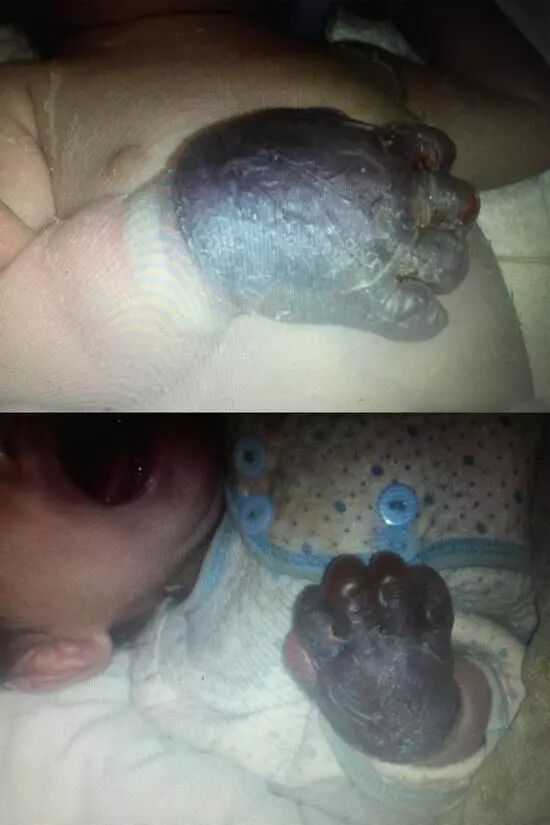 据王强教授回忆,当时缠绕伤最常见的部位都是手指,如此严重的整个右手的缠绕伤在国内外都没有治疗先例。看着尚在襁褓中的刚满三天的小患者,王强教授思绪翻腾,孩子尚年幼,人生的道路还很长,如果截掉整个右手,势必会影响到孩子以后生活的方方面面,造成孩子严重残疾!