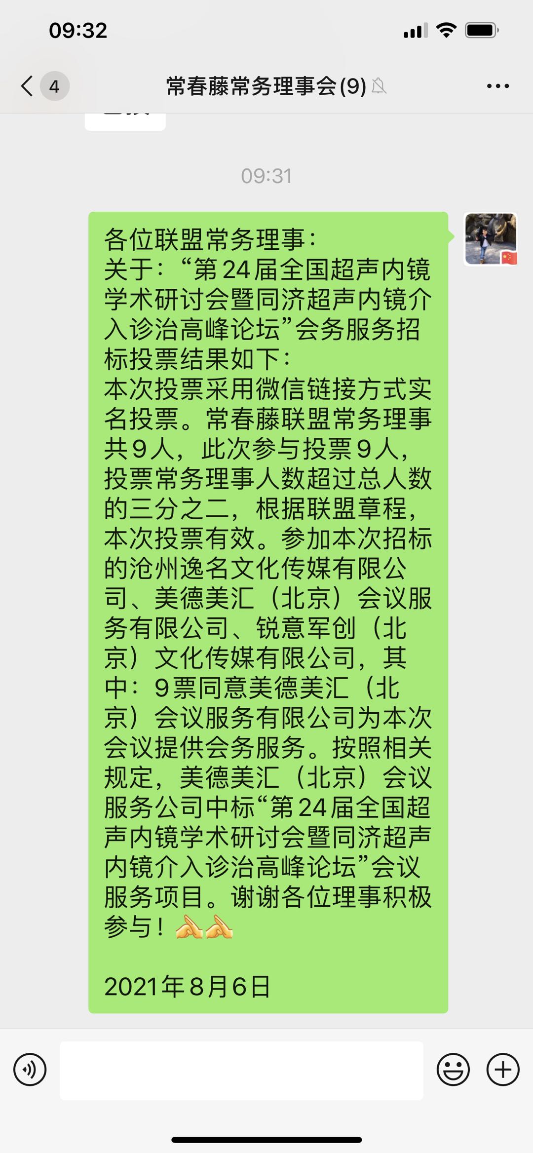 针对会议召开,前期进行了会议会务公司综合比选。参与此次投标的会务公司分别为沧州逸名文化传媒有限公司、美德美汇(北京)会议服务有限公司、锐意军创(北京)文化传媒有限公司。其中经联盟理事会表决,美德美汇(北京)会议服务有限公司中标,先予公示如下: